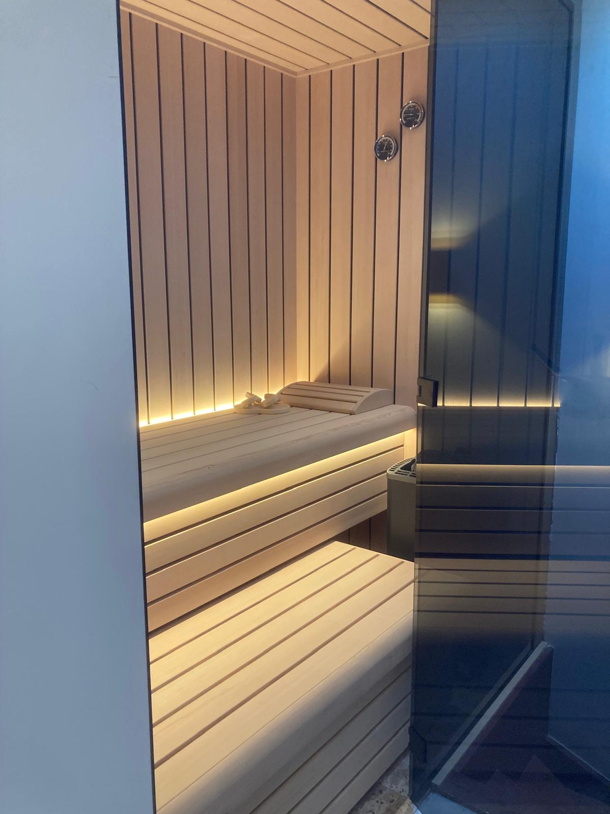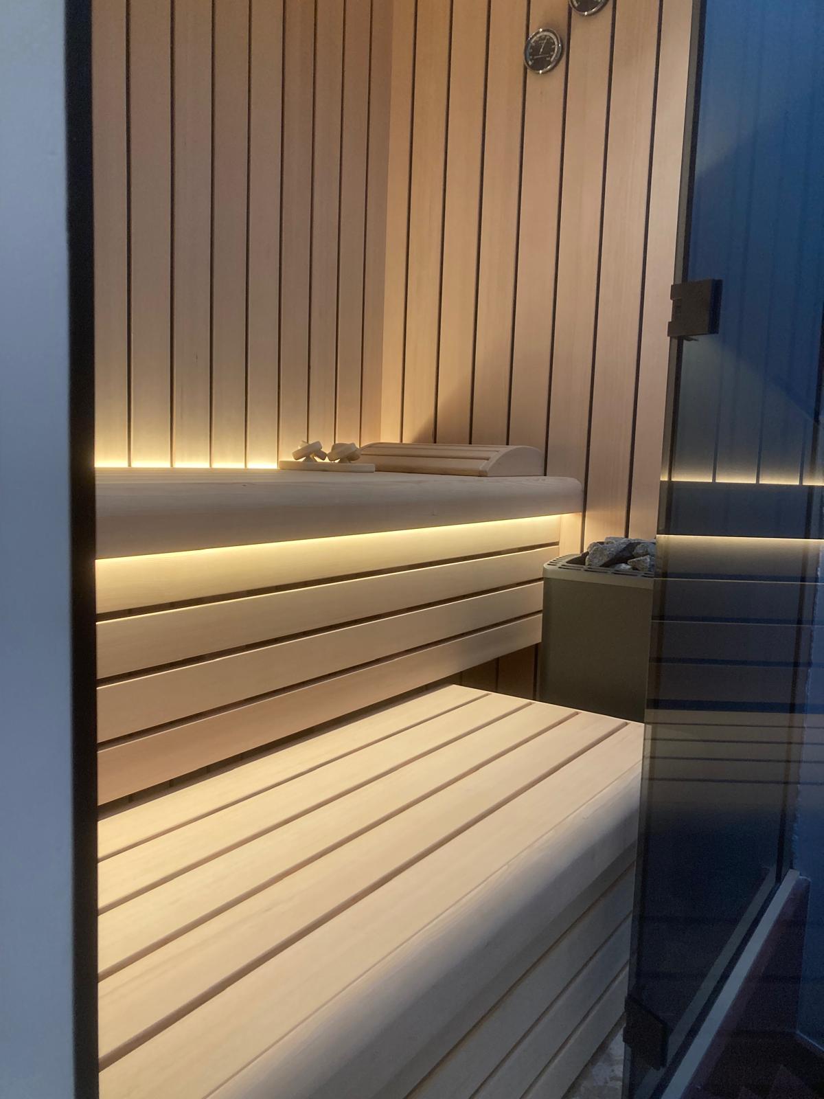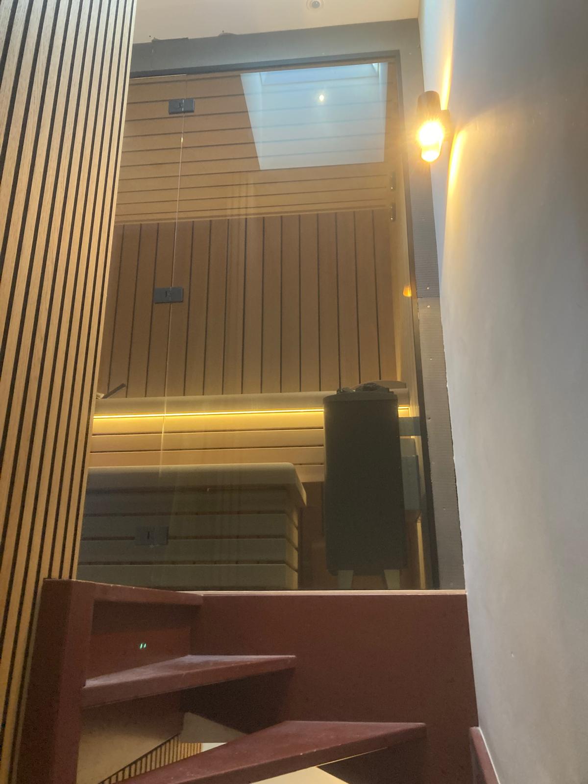 In Amsterdam is een bouwkundige sauna (ca.208x125x240cm buitenwerks) van hemlock hout gebouwd.