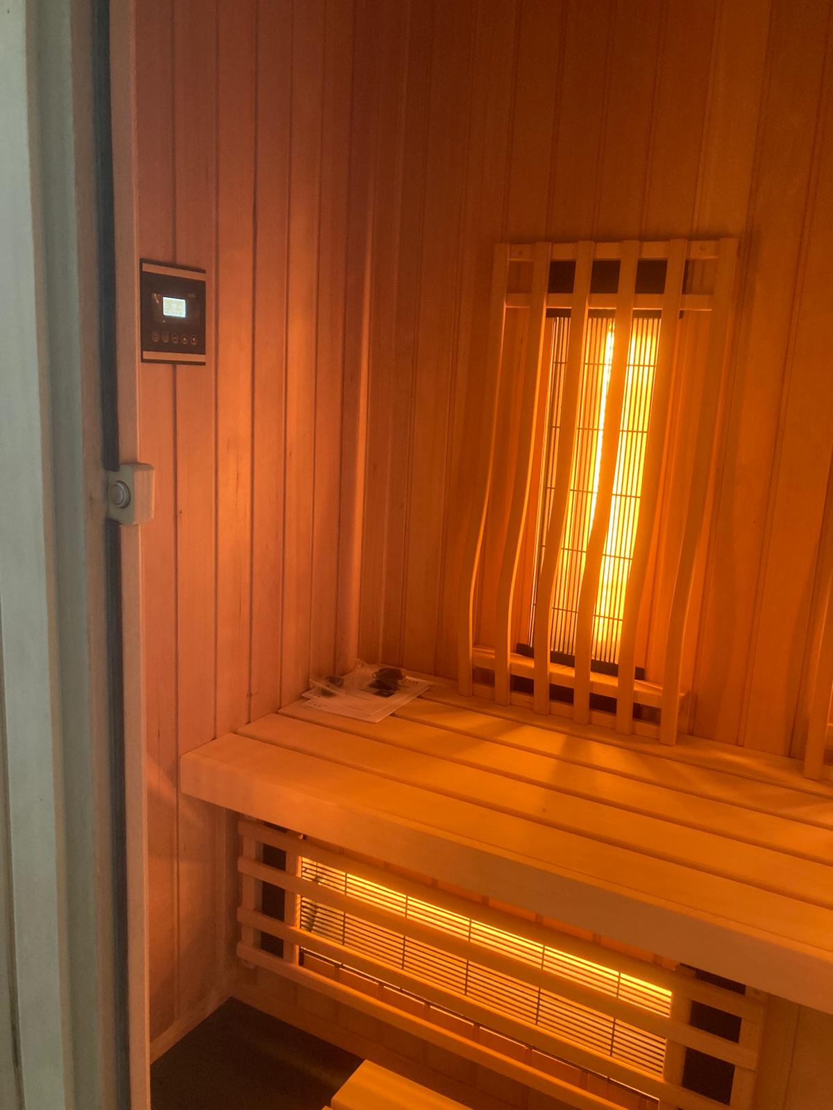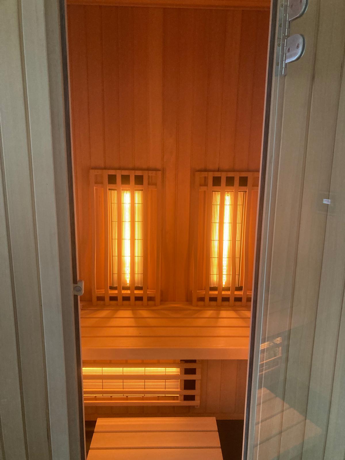De infraroodcabine heeft 5 lampen, die worden aangestuurd door een Infara-Tec Premium bedieningspaneel, die aan de binnenzijde van de infraroodcabine is gemonteerd.