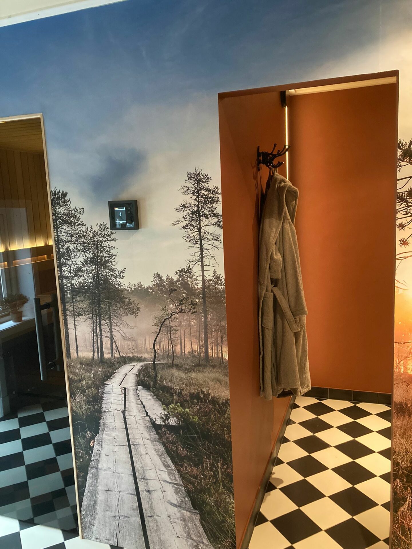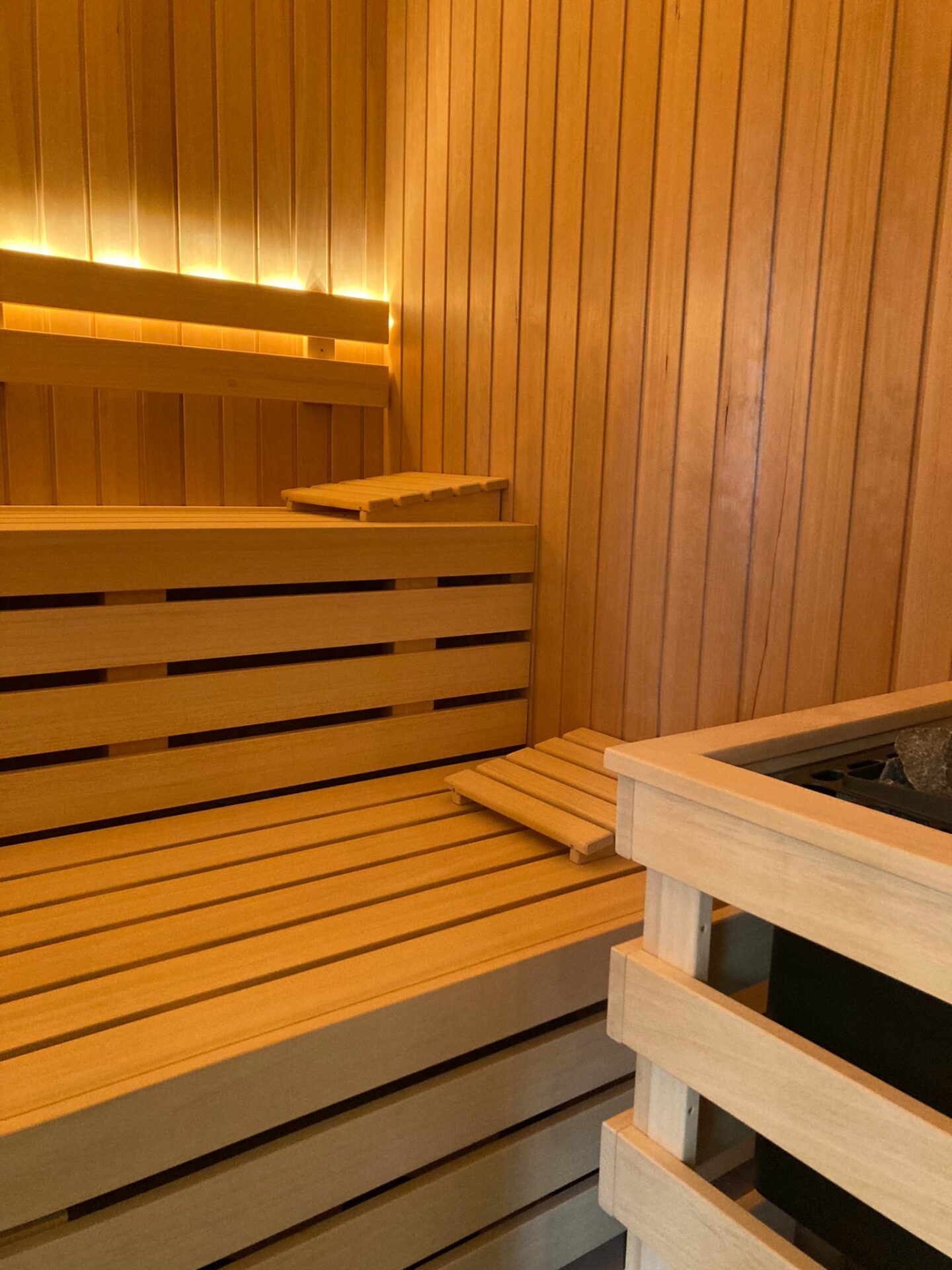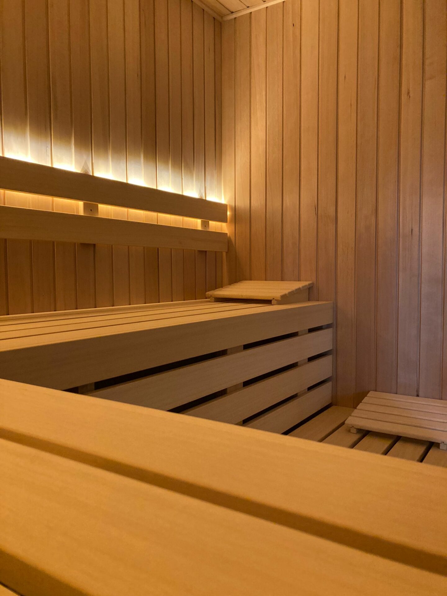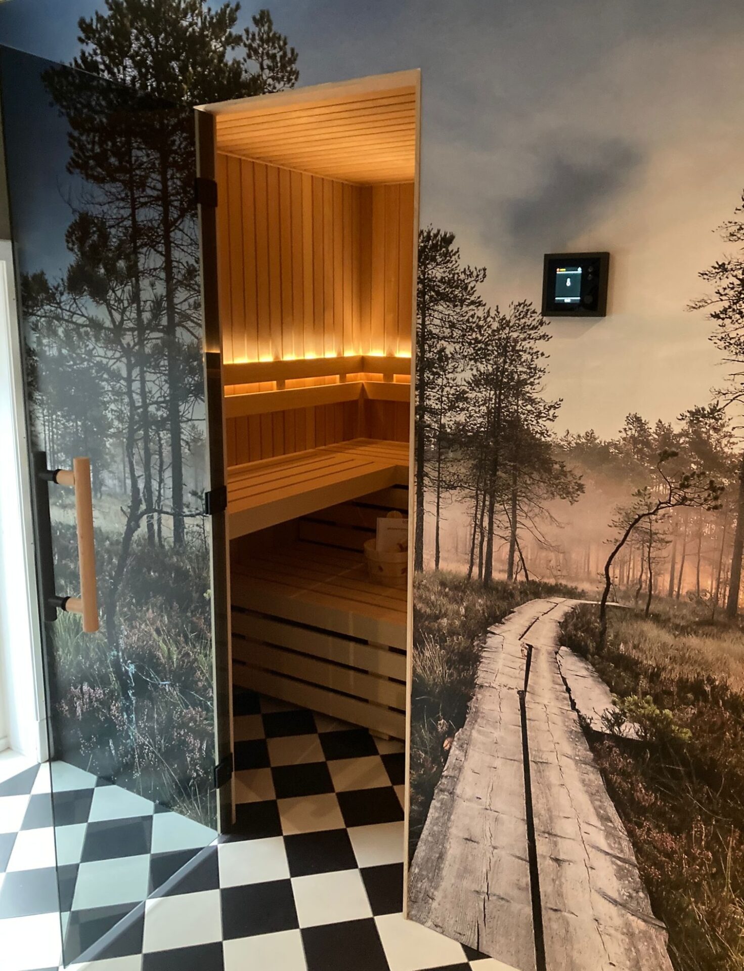 Verder heeft de sauna een Thermat 9,0kW kachel, die wordt aangestuurd door een Emotec D bedieningspaneel.