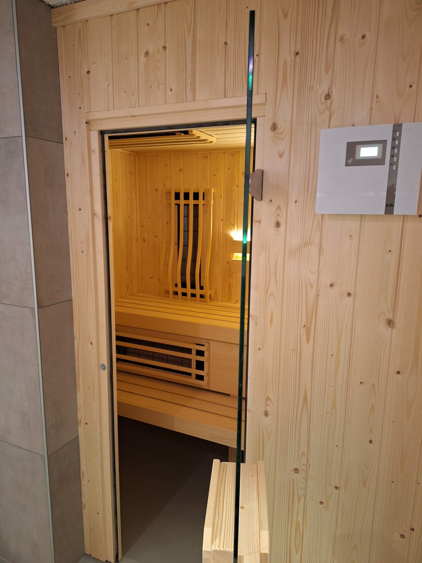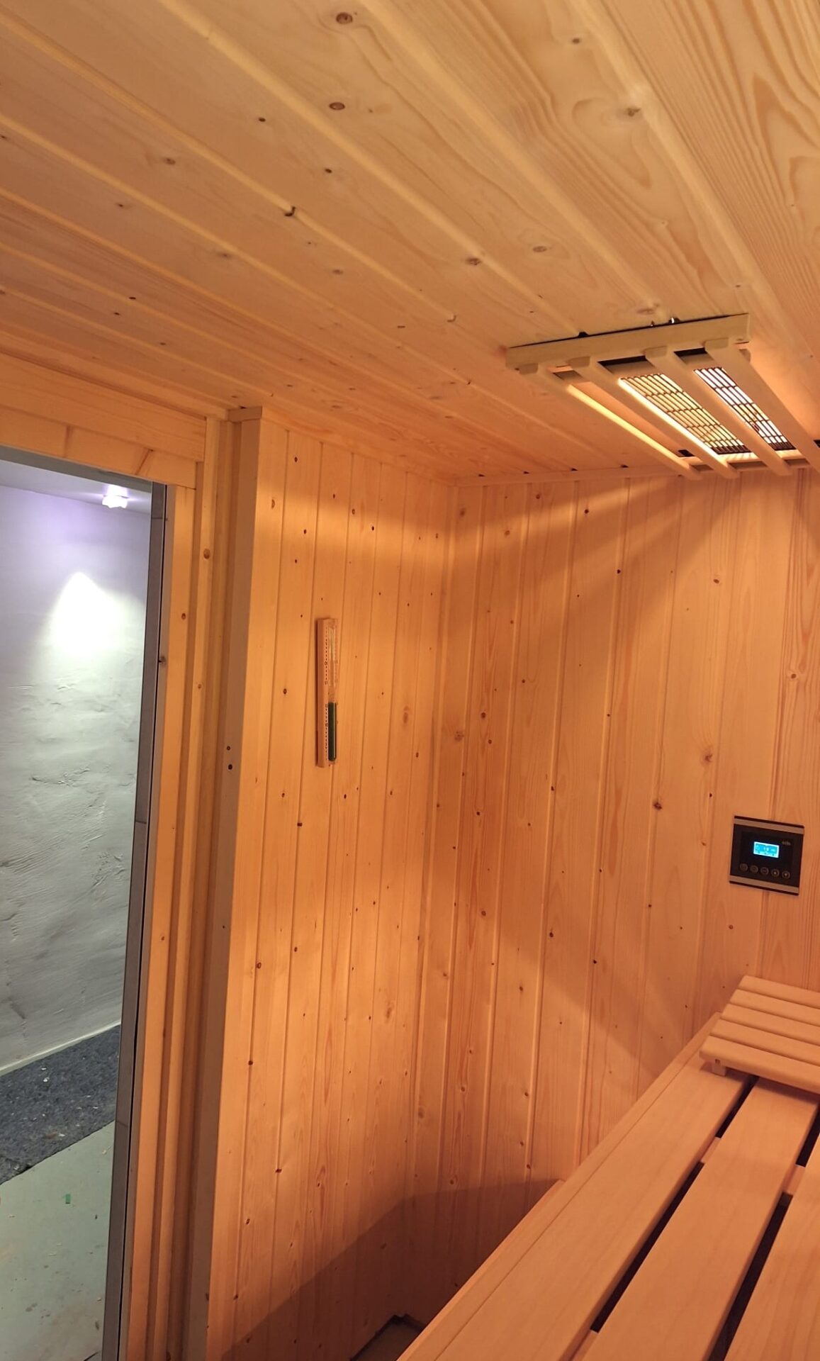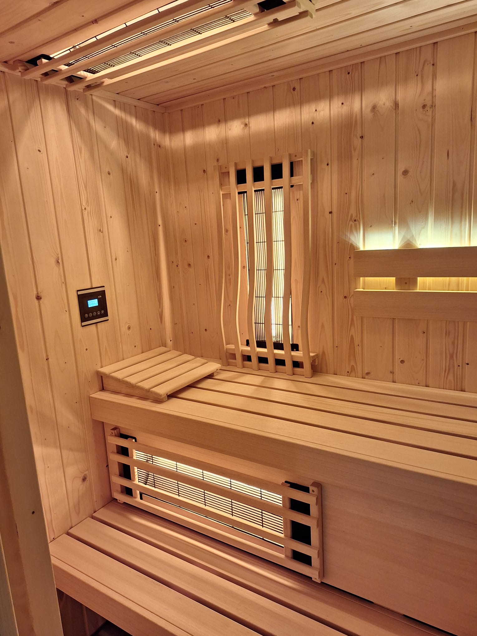 De infrarood lampen zijn te bedienen via een Infratec-Premium bedieningspaneel, die aan de binnenzijde van de sauna is gemonteerd.